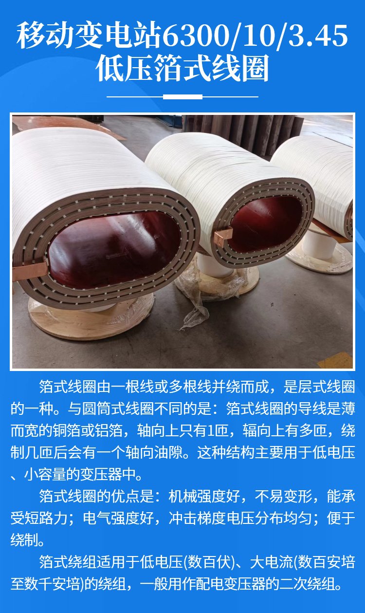 移動(dòng)變電站6300/10/3.45低壓箔式線圈 中小型變壓器低壓繞組